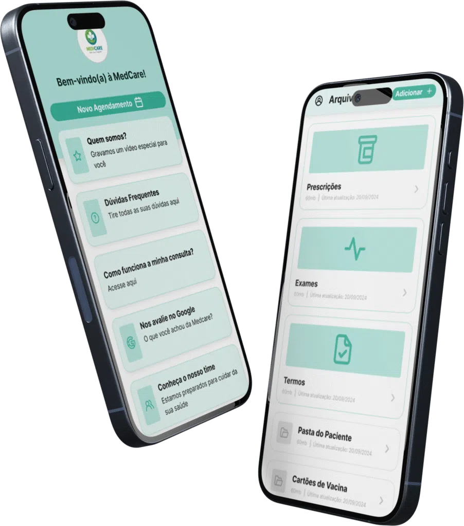 Criamos apps exclusivos para médicos, clínicas e consultórios. O seu app é publicado nas lojas da Apple e do Google com o seu nome e com a sua identidade visual.